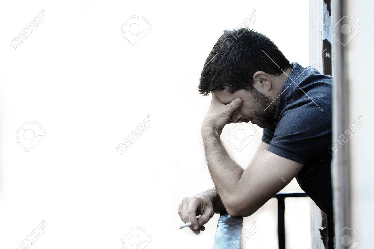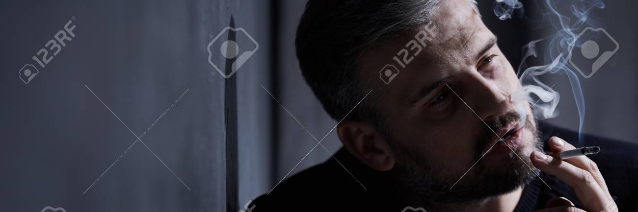 Triste, Deprimido Hombre De Fumar Cigarrillos, Fondo Negro, Panorama Fotos, Retratos, Imágenes Y Fotografía De Archivo Libres De Derecho. Image 71766711.